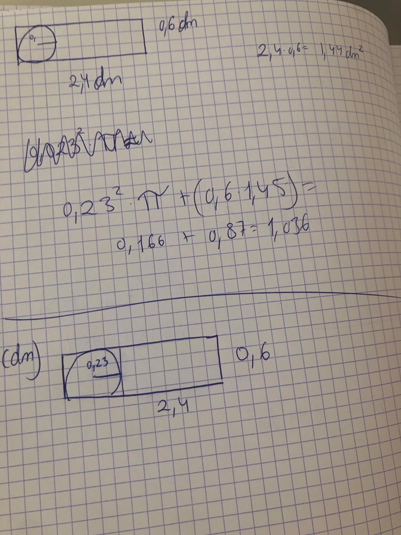 Hur ska jag rita. Ska jag bara rita en plåt med längden 2,4dm och 0,6dm.  Och Innuti den plåten rita en cirkel...??  Skulle du kunna visa med bild? Skulle uppskattas!
