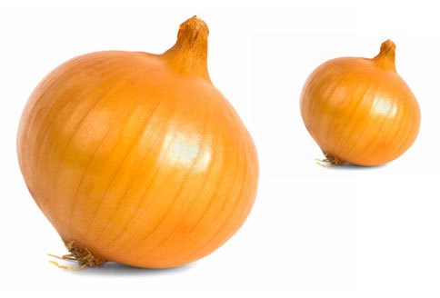 Sedan räknar man volymen på den stora löken och jämför dem. För att veta hur stor del av den stora löken som behövs, dividerar vi 2 små lökars volym på volymen för en stor lök.