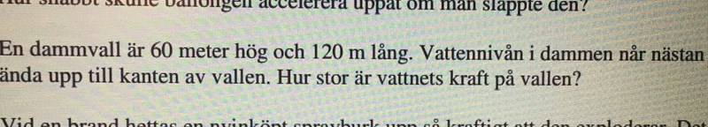 I vanliga fall när man får fram trycket brukar man tillämpa den för att lösa uppgiften. Men att man i detta fall använder sig utav medeltrycket, beror det på att dammvallen är jätte stor till skillnad från övriga uppgifter där man räknar med ett litet föremål som påverkas av samma tryck?