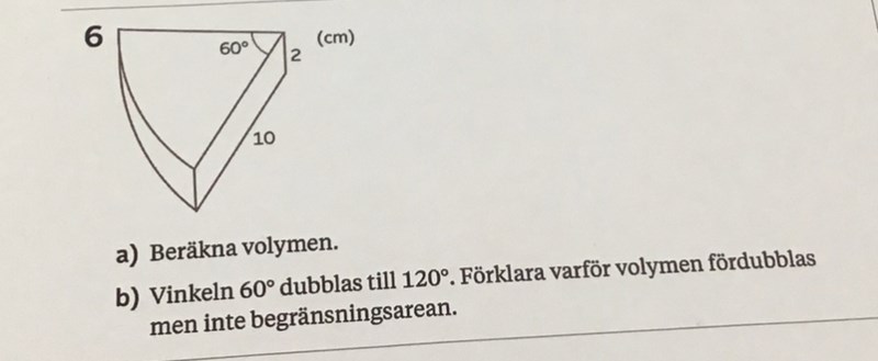 Du har nog inte stött på exakt denna geometriska figur innan, men låt oss gissa en rimlig formel för volymen. Tycker du att Volym=basarea*höjd låter rimligt?