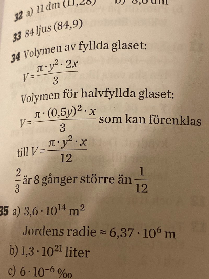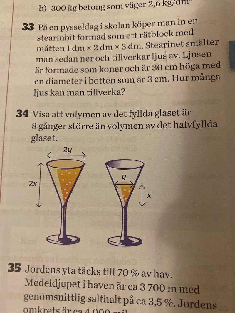 Volym av glas hög höjd kapitel 3 prio matematik 8
