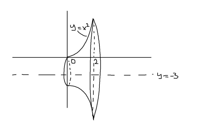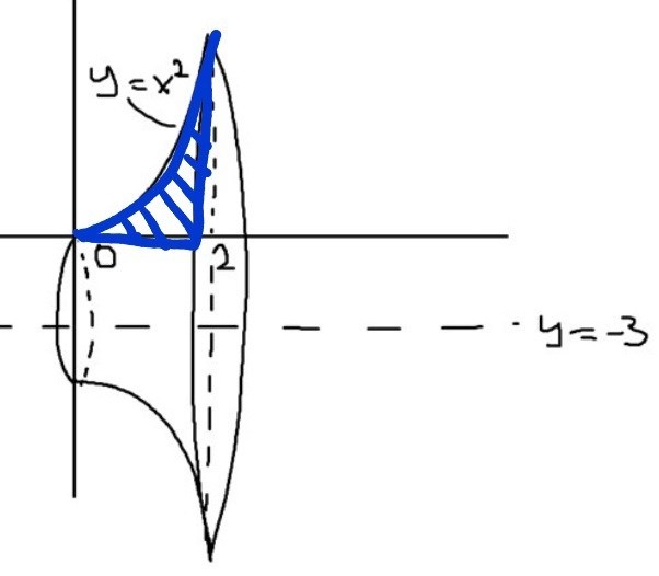 Har tidigare bara fått uppgifter där man ska rotera kring x-axeln (där y=0), men nu är y=-3 vilket krånglar till det. Jag har ritat men vet inte riktigt hur jag ska fortsätta.
