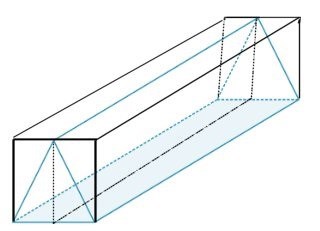 Kom ihåg att arean av en triangel är basen gånger höjden genom 2, på samma sätt är volymen av prismat basen gånger höjden genom 2