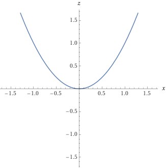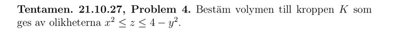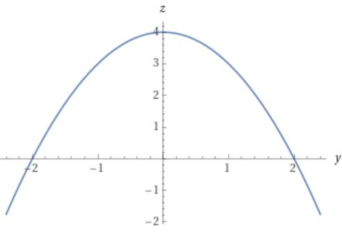 Den övre kurvan är z = 4-y2, den undre är z = x2.