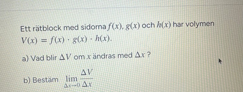 Det kan hända att de på a)-uppgiften vill ha "hela" uttrycket, utan att man tar bort "små" termer. Sedan ska man låta i b)-uppgiften för att bilda derivatan.