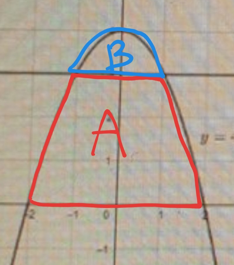 Laguna skrev:Yngve skrev:Är det det röda området A eller det blåa området B som roteras runt x-axeln?