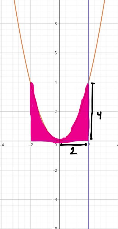 Ja. Höjden/övre integrationsgränsen är lika med y-koordinsten för skärningspukten mellan linjen x = 2 och parabeln y = ax2, som du enkelt kan beräkna algebraiskt.
