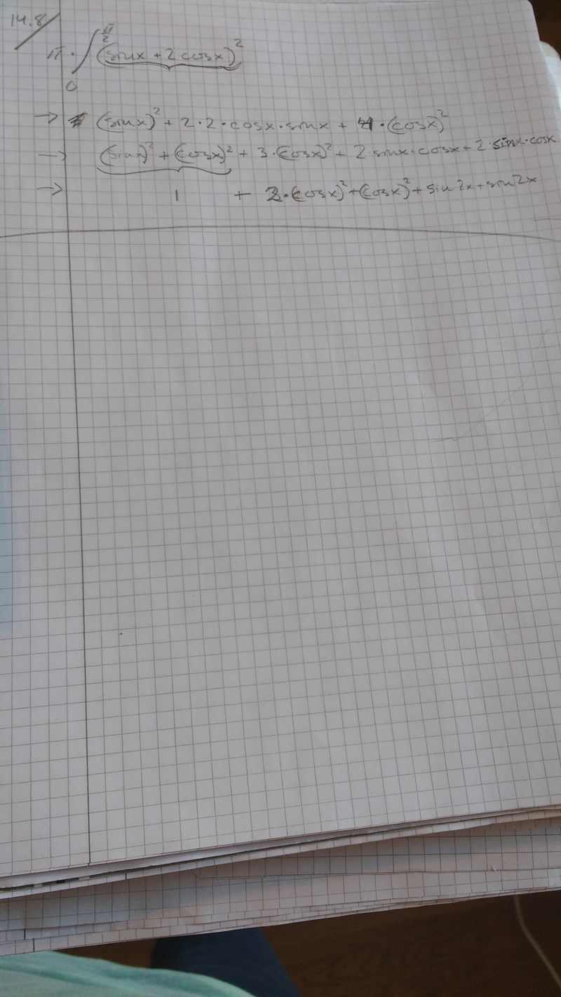 4. Min fråga om sinx^2 var syftad på om man delade upp den. Jag kommer inte på hur jag ska lösa denna, alltså varken uppgiften eller (sinx)^2. Hint/visa tillvägagångssätt?