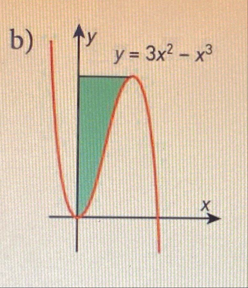 Du behöver börja med att ta reda på koordinaterna för maximipunkten, så att du kan hitta dels överfunktionen, dels den övre integrationsgränsen.