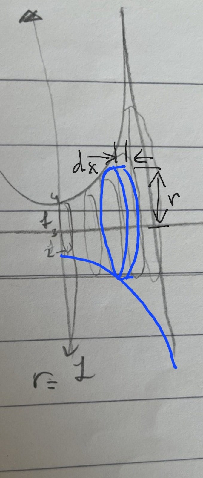 Varje skiva har alltså en radie r och en tjocklek dx.