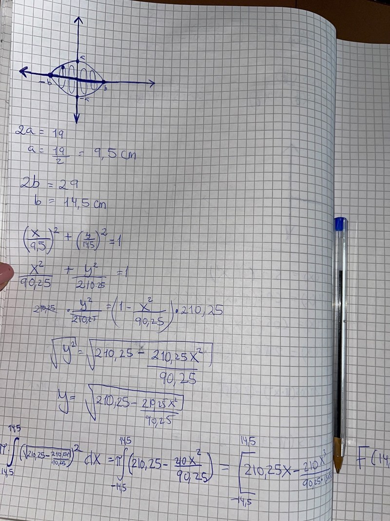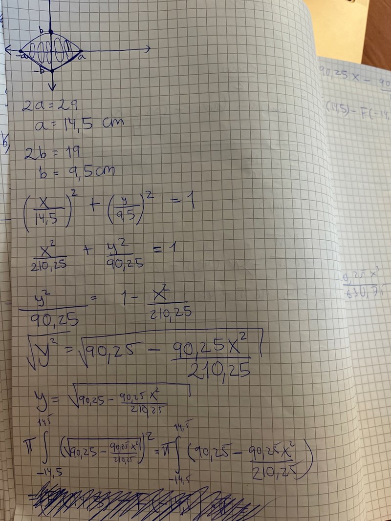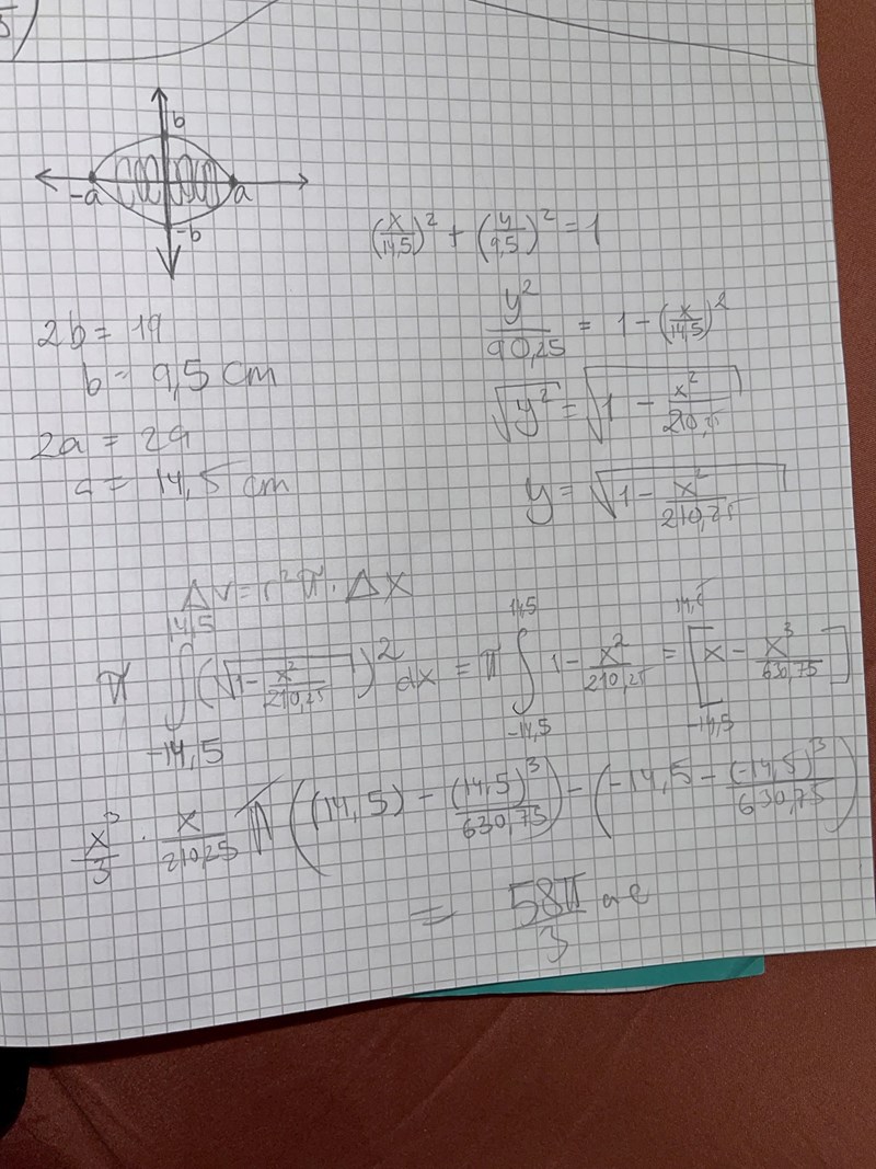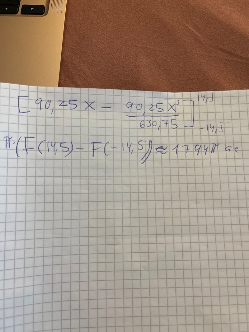 Aa juste det är ju ett fel. Svaret ska anges i volymenheter men i facit står det att volymen är ca 1362pi v.e vilket jag inte har fått fram i mina beräkningar