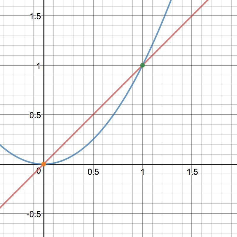 Beräkna volymen av den rotationskropp som uppstår då området som begränsas av linjen och parabeln roteras kring