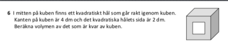 med kanten = 2 dm . Och du vet hur långt hålet är också, eller hur? Det går ju