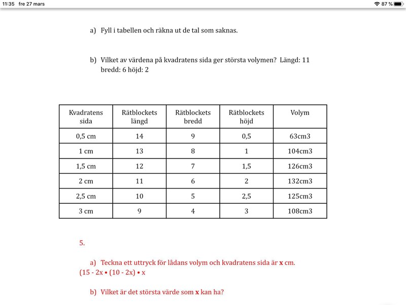 Undersök vad som händer med uttryckets faktorer när x blir större. Hur högt kan x gå innan beräkningen börjar se konstig ut?