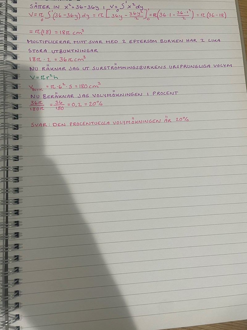 Jag behöver hjälp med denna uppgift. Jag antar att det är en integral som jag ska räkna ut och att jag endast ska fokusera på där burken svällt då det är det som är volymökningen. Men hur börjar jag?