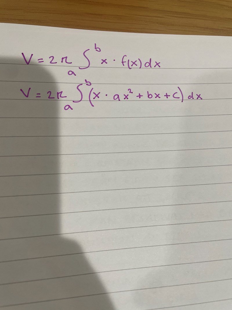 Det är formeln för skalmetoden, och den lär du dig i matte 5. Jag hade hellre använt mig av skivmetoden eftersom det är den man lär sig i matte 4. Yngve ger dig bra tips som jag tycker att du borde följa.