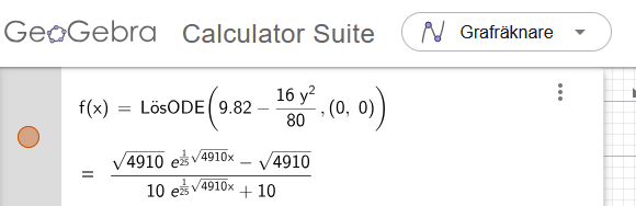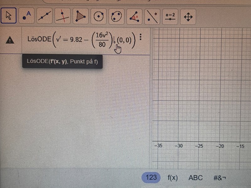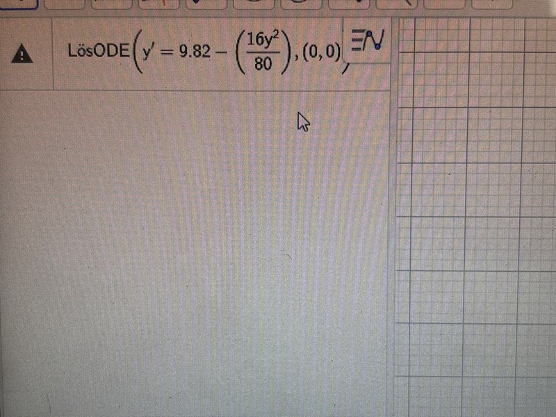 Om man befinner sig i grafräknarmodulen (vilket du verkar göra i skärmbilden) så kräver LösODE att man löst ut y' och endast angett högerledet i diff:ekvationen, d.v.s. .