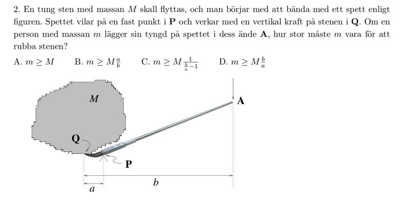 Kraften A måste vara större än kraften vid Q för att rubba stenen. Men jag vet inte hur jag kommer vidare.