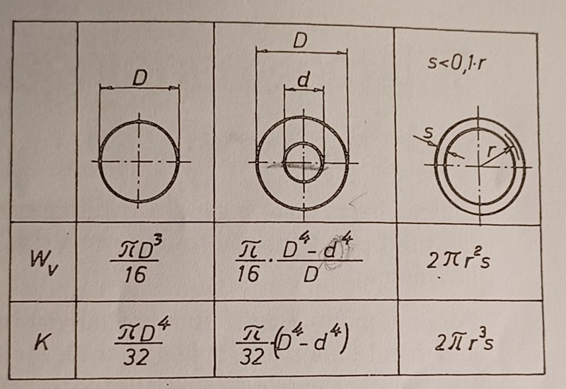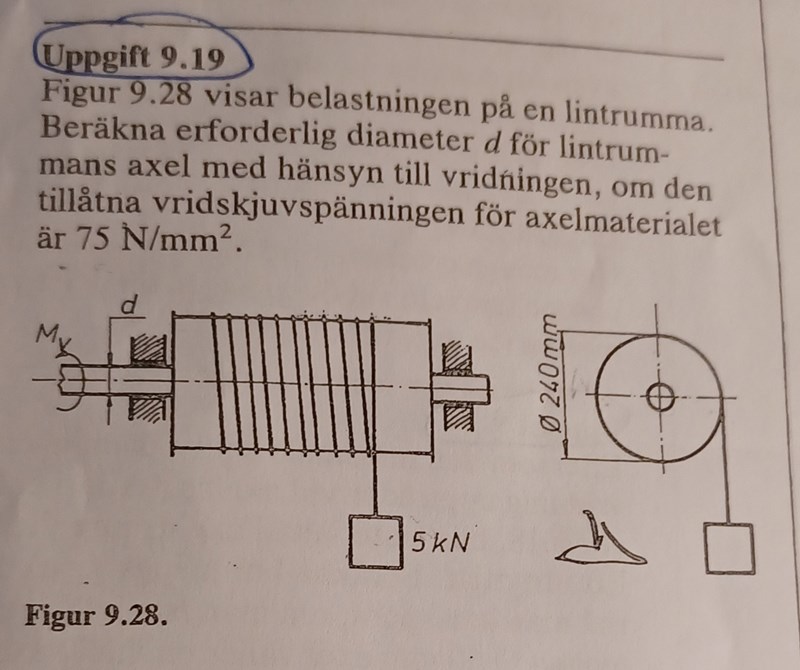 Hej. Jag har försökt lösa uppgiften 9.19 med hjälp av ekvationen τv=Mv/Wv. vridmotståndet Wv kan man beräkna med hjälp av ekvationen i mitted av den nedanstående tabell. Jag försökte lösa vridmomentet Mv som Mv=F*r, men resultatet blir fel. Finns det någon formel som jag har glömt använda. (SVAR: 34,4 mm)