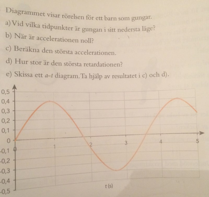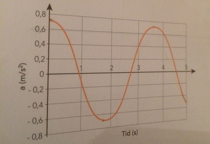 Du vet var (vid vilka tidpunkter) accelerationen är störst, minst och 0. Du vet att kurvan är periodisk så accelerationen är också periodisk. Rita ut punkter och rita kurvan efter det.