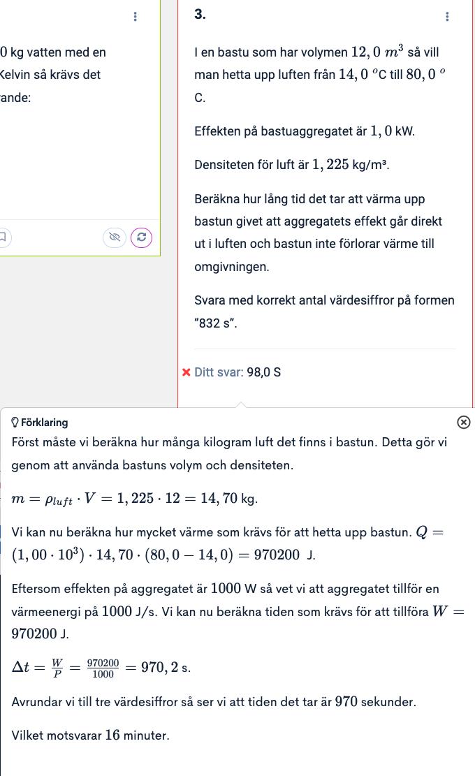 eddberlu skrev:ah sorry, borde vart tydligare. I uppgiften skrev man bara 1,0 kW. inte kWh eller W/s