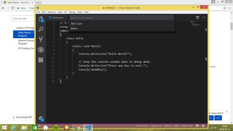 Jag har laddat ner Visual studio code men det frågar i vilken environment jag vill debugga. Hur löser jag det? Går det att köra koden i vs code?