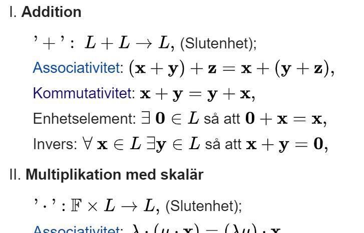 Wikipedia villkor för vektorrum fel tecken?