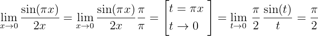 (sin(pi x)) / (2x)  = (pi/2) (sin (pi x)) / (pi x) går mot pi/2