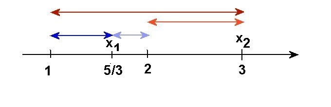 Alltså 5/3< X < 3