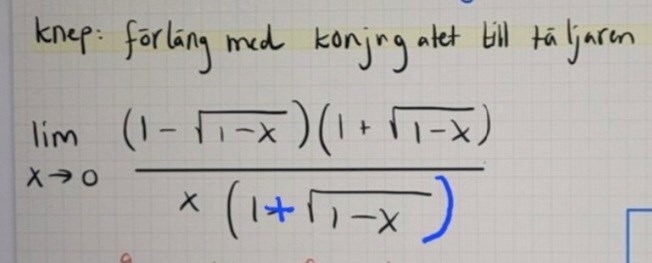 Nu har jag förenkla ganska mycket men inser nu att stoppar jag in 0 istället för x blir det noll i nämnaren. Det betyder att jag måste förenkla mer, vad skulle jag då kunna göra?