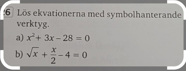 Programmeraren skrev:"Symbolhanterande verktyg" är datorprogram som löser uppgiften. Du kan t ex använda https://www.geogebra.org/calculator för att lösa ekvationerna.