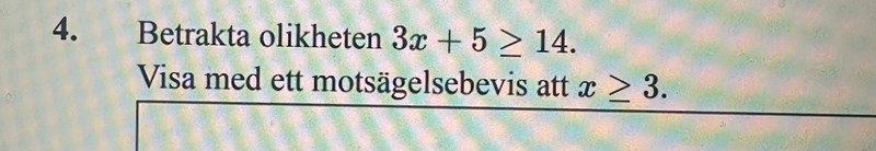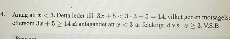 jag förstår inte hur 3x + 5 < 3• 3 + 5 = 14 ger en motsägelse