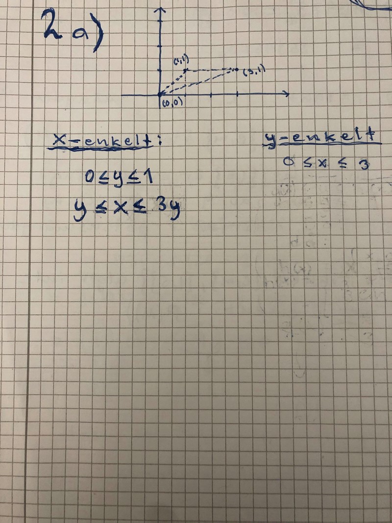 Förtydligande. Jag har löst x-enkel samt den ena gränsen för y-enkel men får inte till den andra. Uppskattar all hjälp på traven