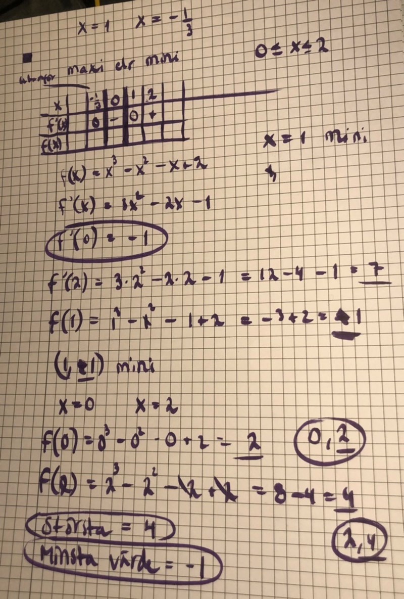 Som ni ser så är -1/3 utanför mitt intervall och därför kan jag skita i att ha med den i beräkningen? Den är utanför 0 och 2