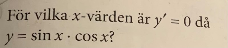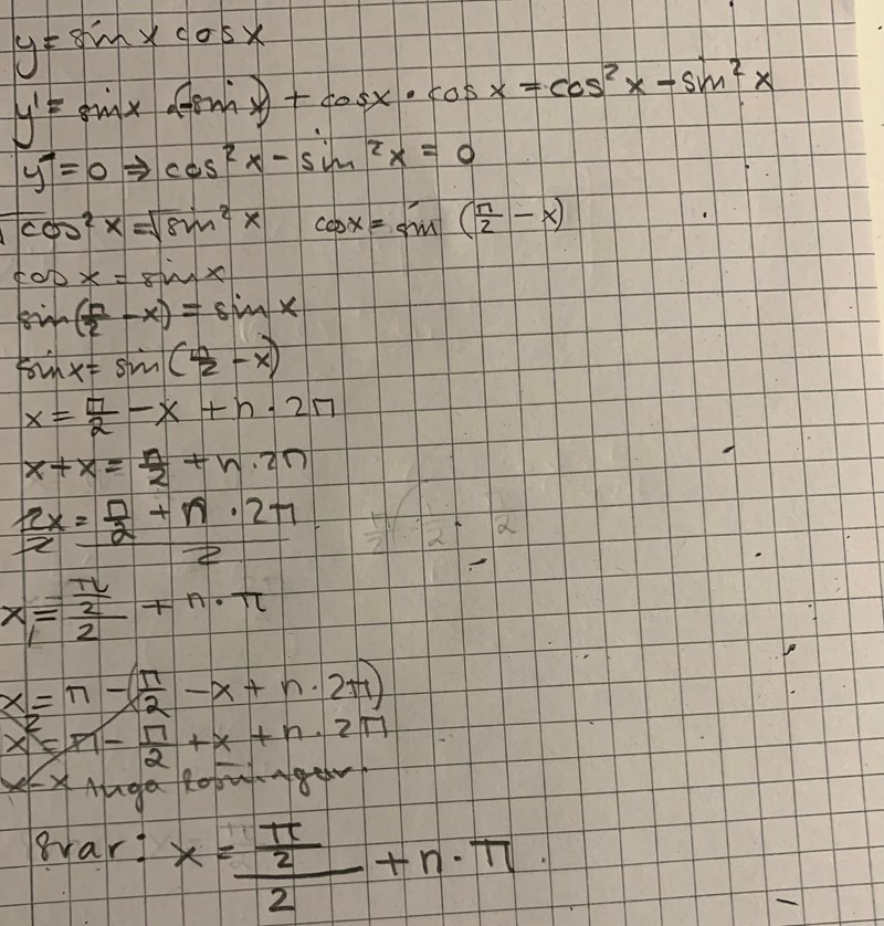 Undrar om jag tänkt rätt. I facit ska svaret vara +-pi/4 + n * pi