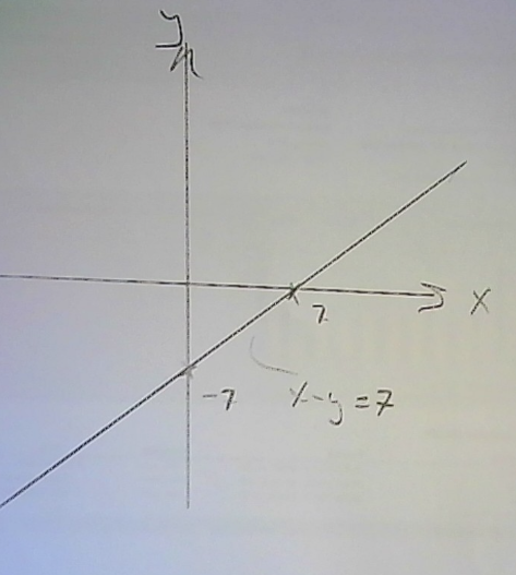 Om du ritar upp x-y = 7 i ett koordinatsystem blir det en rät linje.