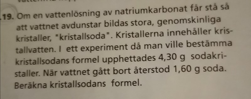 I den här uppgiften skall du RÄKNA UT hur många kristallvatten det är.