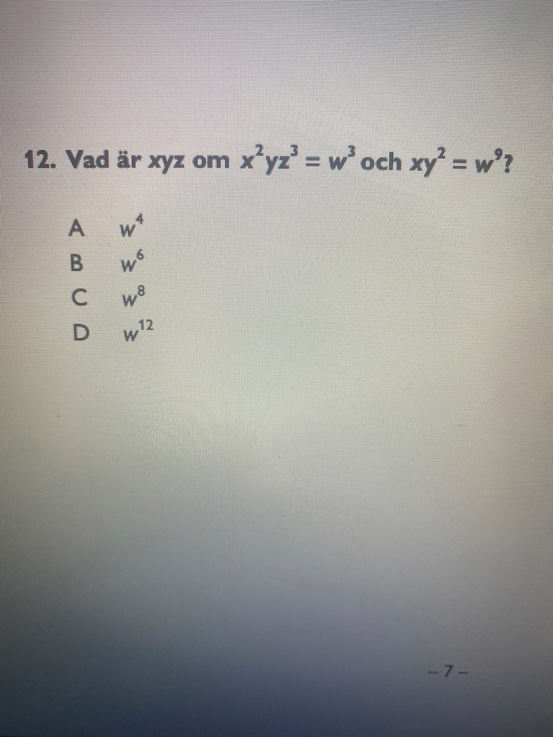(xyz)3=w12 och då kan vi ta tredje roten ur och få xyz=w4