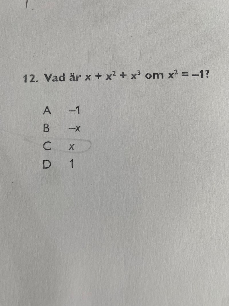 Hej! Förstår inte alls denna uppgiften:( Tycker det är så märkligt att x2 kan vara -1 när man vet att enligt regler så är ett tal i kvadrat alltid positivt? Förstår ingenting, för jag kan ju inte heller då beräkna x genom att ta roten ur -1, för man kan ju ej ta kvadratrot ur ett negativt tal. Har jag missförstått allt?
