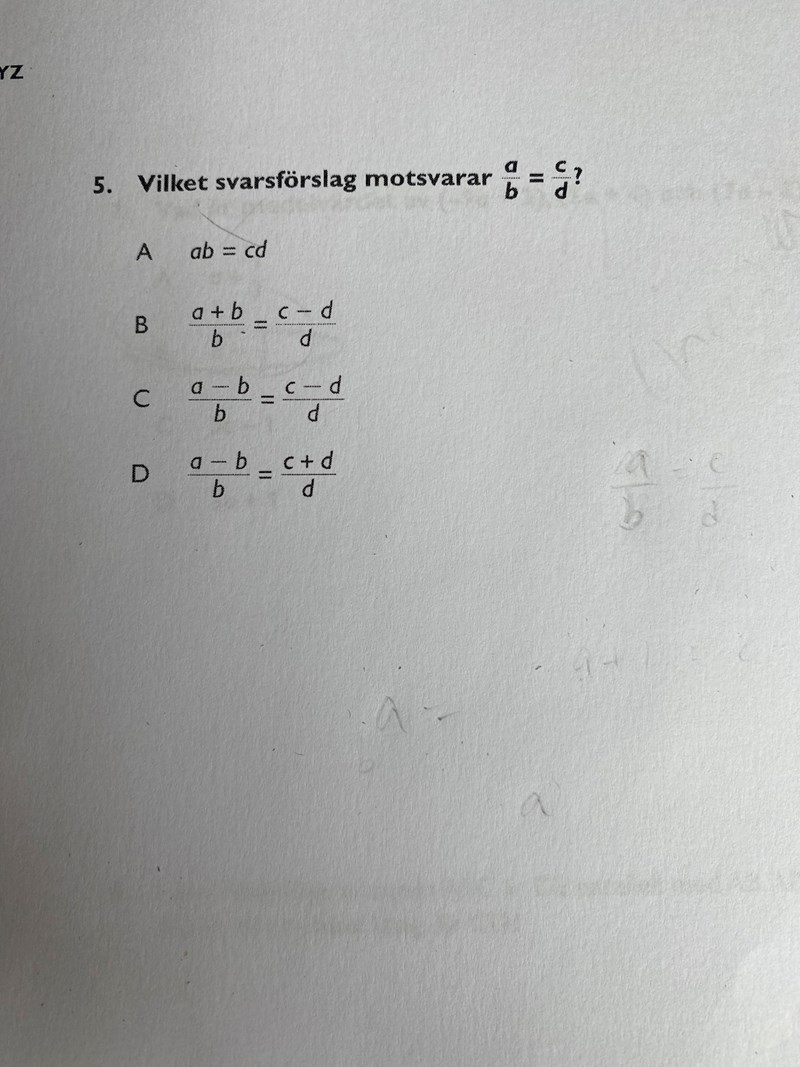 De undrar vilket av alternativen A, B, C och D som motsvara uttrycket.