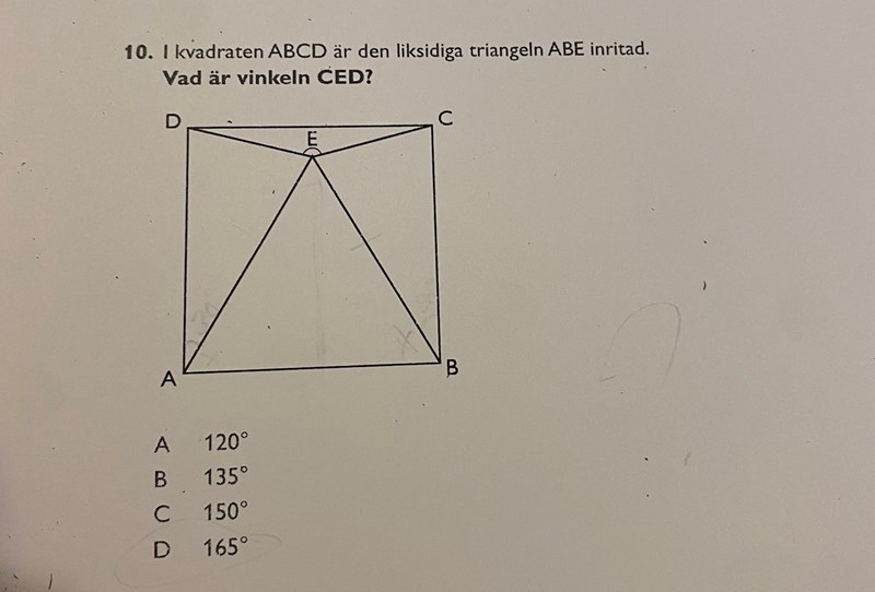 Triangeln ADE är likbent hjälper det?
