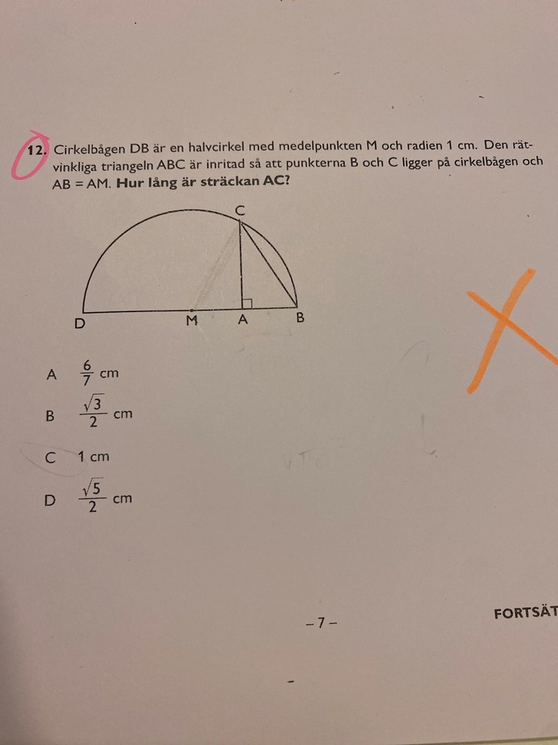Smutstvätt skrev:Vi vet inte om BC är 1 cm lång, men eftersom MB är en radie till cirkeln, är MB = MC. Hur lång är då CA? :)