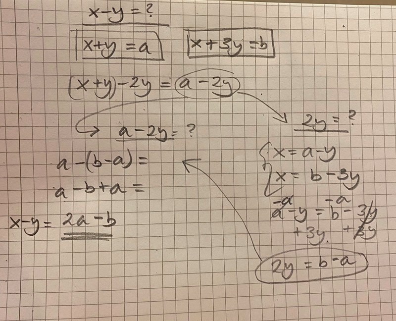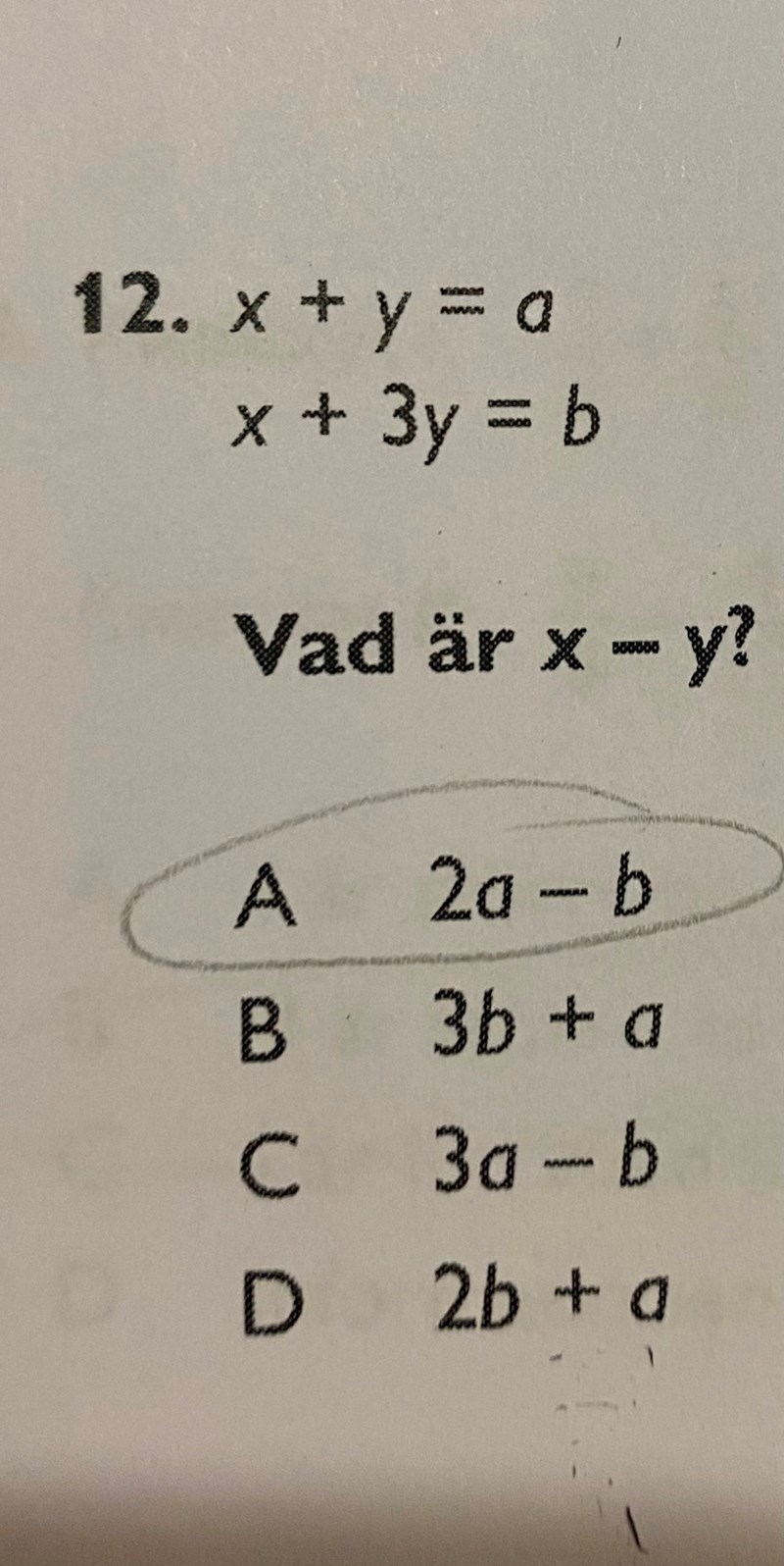 Vilket blir 2x och inte x-y, men provar man A blir det rätt :)
