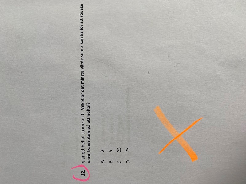 Okej, tack så mycket! Men vad innebär ”75x ska vara kvadraten på ett heltal?” Är det (heltalet)2=75x?
