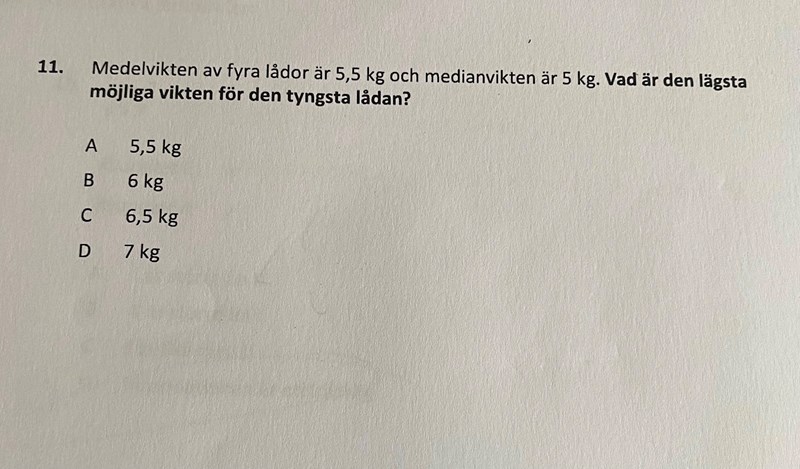 Hej! Hur ska jag tänka på denna uppgiften. Jag kan komma fram till att den lättaste lådan+tyngsta lådan=12 men jag vet inte hur jag ska kunna komma fram till ett svar utifrån den vetskapen?