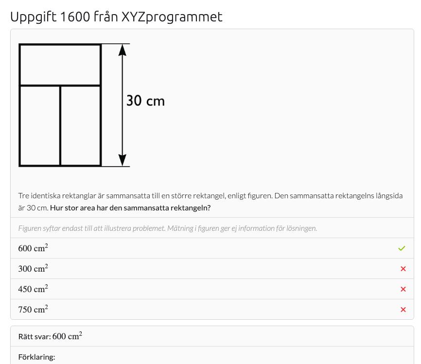 Nyckelordet är att rektanglarna är identiska. Fundera på hur de förhåller sig jämte varandra. Kan du dra någon slutsats av rektanglarnas längd-till-bredd-förhållande?