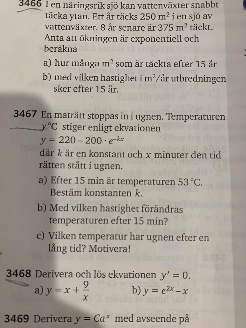 men det står ju enligt ekvationen y=220-200*e^-kx om du kollar bilden noga? sen fick dom det till 0,01202 och i b skriver dom y'=220-200*e^-0,01202 med minus tecken igen? men i a svarade dom inte med minustecken?
