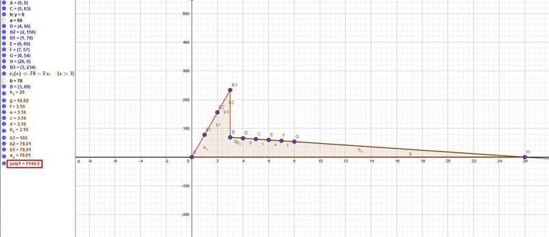 Rita en horisontell linje från (0; 78) till (3; 78), sedan en rät linje riktad snett neråt från (3; 78) till (29; 0).