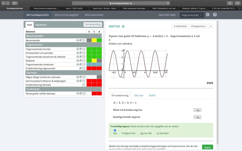pepparkvarn skrev:För att beräkna k, undersök hur många radianer en repetition av grafen är. Om du väljer en punkt på grafen, hur många radianer går det innan du gått en hel period?