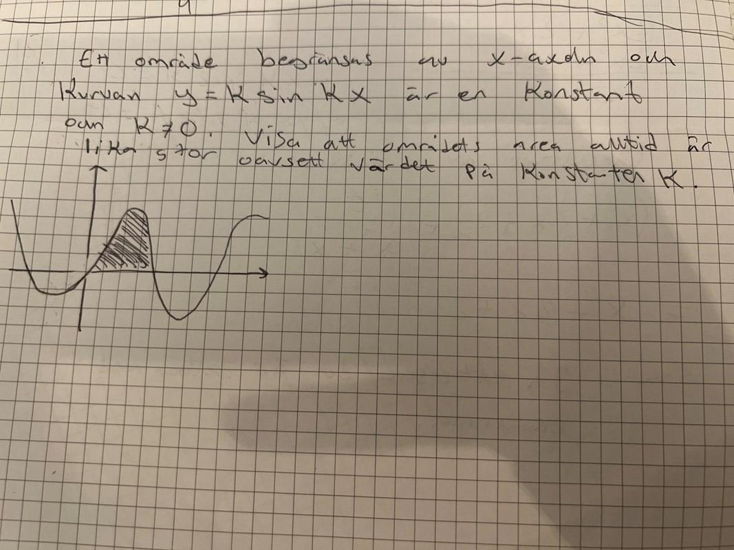 Beräkna nu arean med dessa gränser. Beror arean på k eller inte?